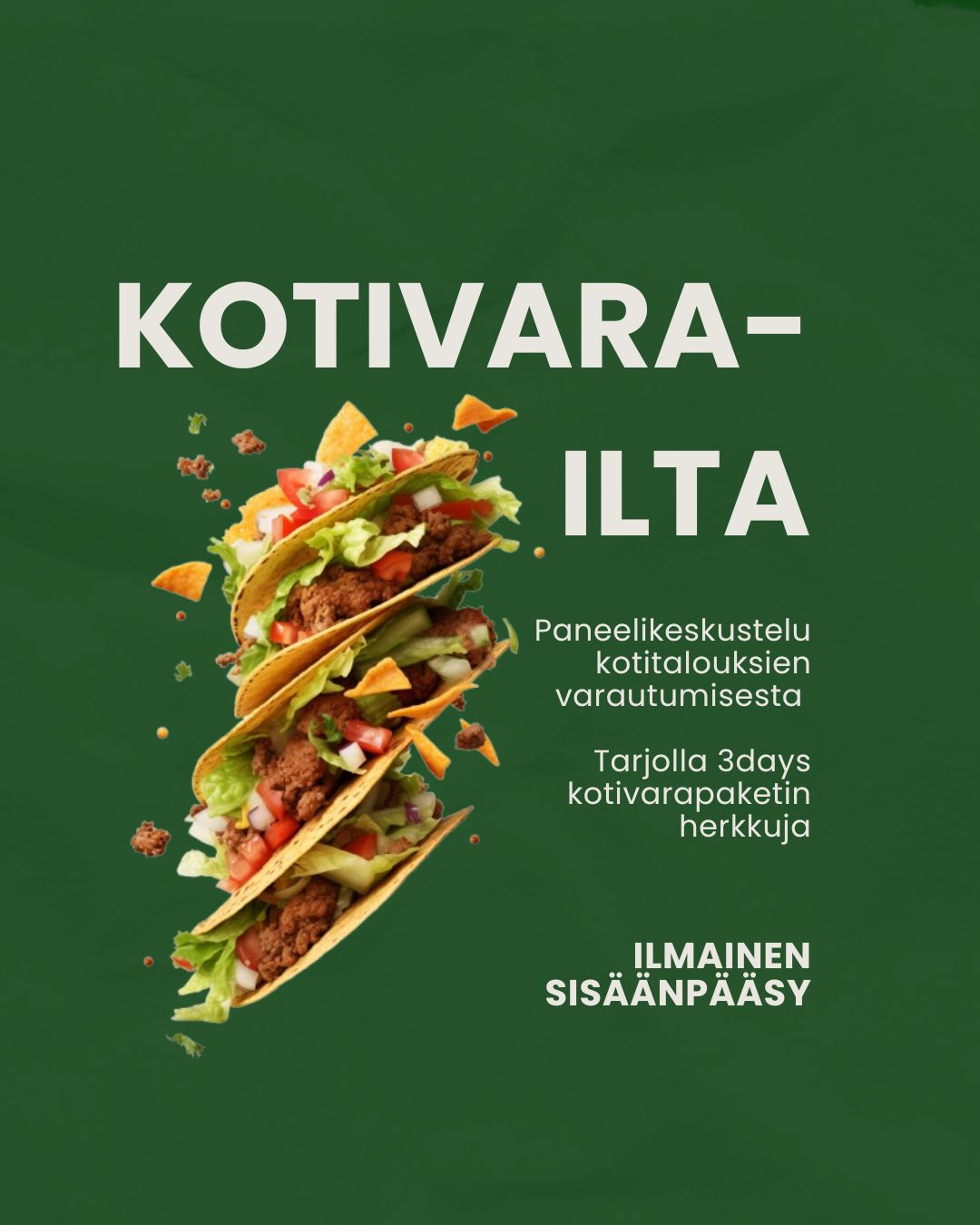 Kotivaraillassa pääset kuuntelemaan paneelikeskustelua kotitalouksien varautumisesta sekä maistelemaan 3days kotivarapakkausten herkkuja.