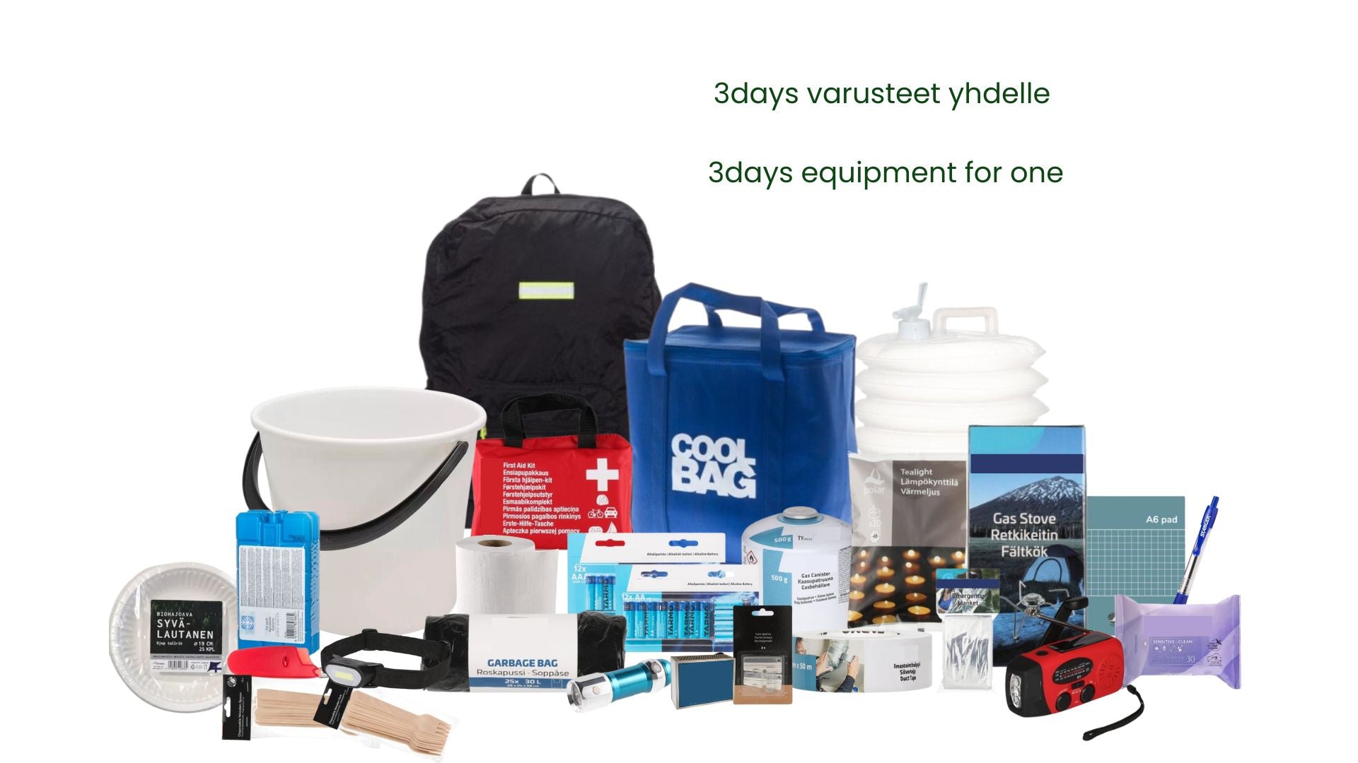 3days täydellinen kotivarapakkaus yhdelle